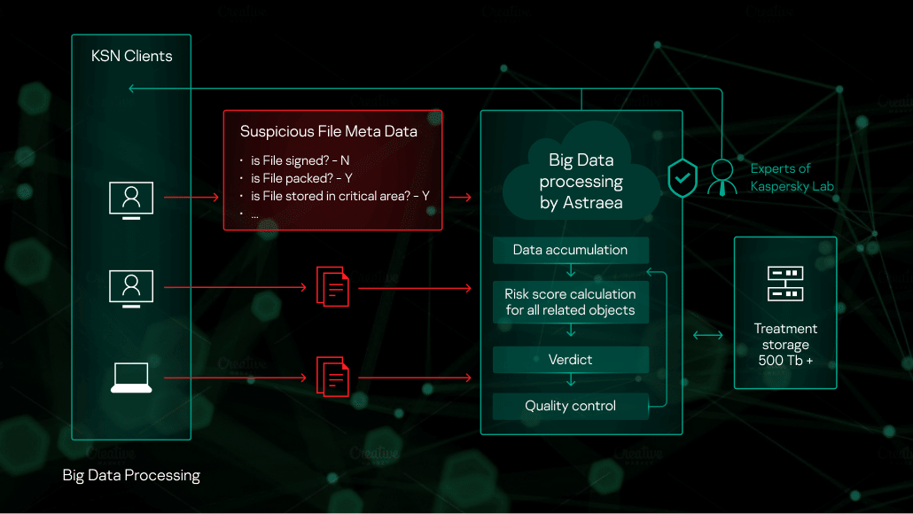Once Astraea generates its verdict on object, it transfers this to the Kaspersky Security Network cloud service, enabling it immediately reach users all over the world